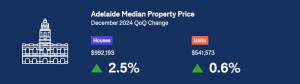 Adelaide house prices rose for the eighth consecutive quarter, climbing by almost $25,000 (2.5%) over the December quarter to reach a new record of $992,193. However, the pace of quarterly growth has slowed to about one-third of its rate in the previous quarter and is roughly half compared to the same time the year prior. Despite slowing growth, Adelaide is on track to surpass $1 million over the first quarter of 2025, needing just $7,807 (0.8%) to achieve this milestone. Annual gains have also slowed, yet remain strong at 14.6% ($126,000), positioning Adelaide houses as the second-best-performing market in 2024, behind only Perth.